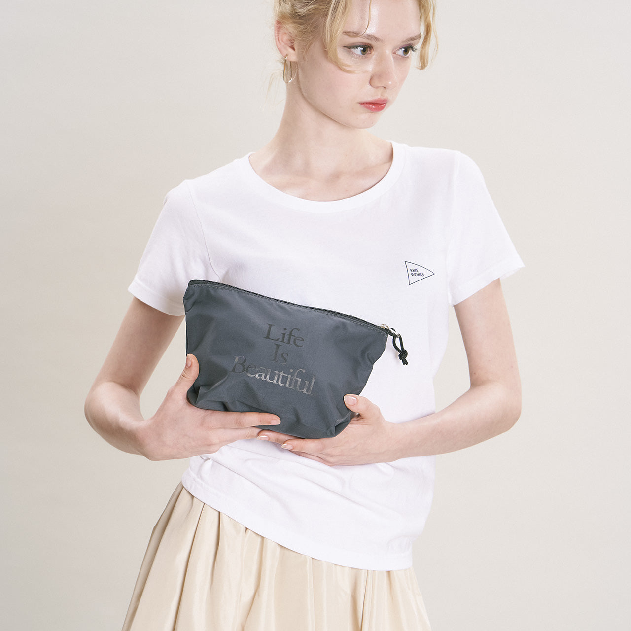 A zipper pouch with a wide gusset and large capacity for stable use. This item allows you to carry your favorite message every day with the color of your choice.